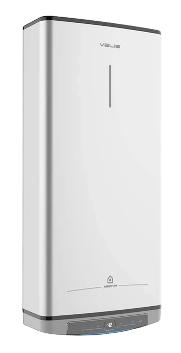 VELIS PRO — нове покоління плоских накопичувальних водонагрівачів Ariston преміум‑класу з електронним керуванням і великим дисплеєм. Серія робить акцент на комфорті гарячої води, економії електроенергії та довговічності бака завдяки технології TitanShield.